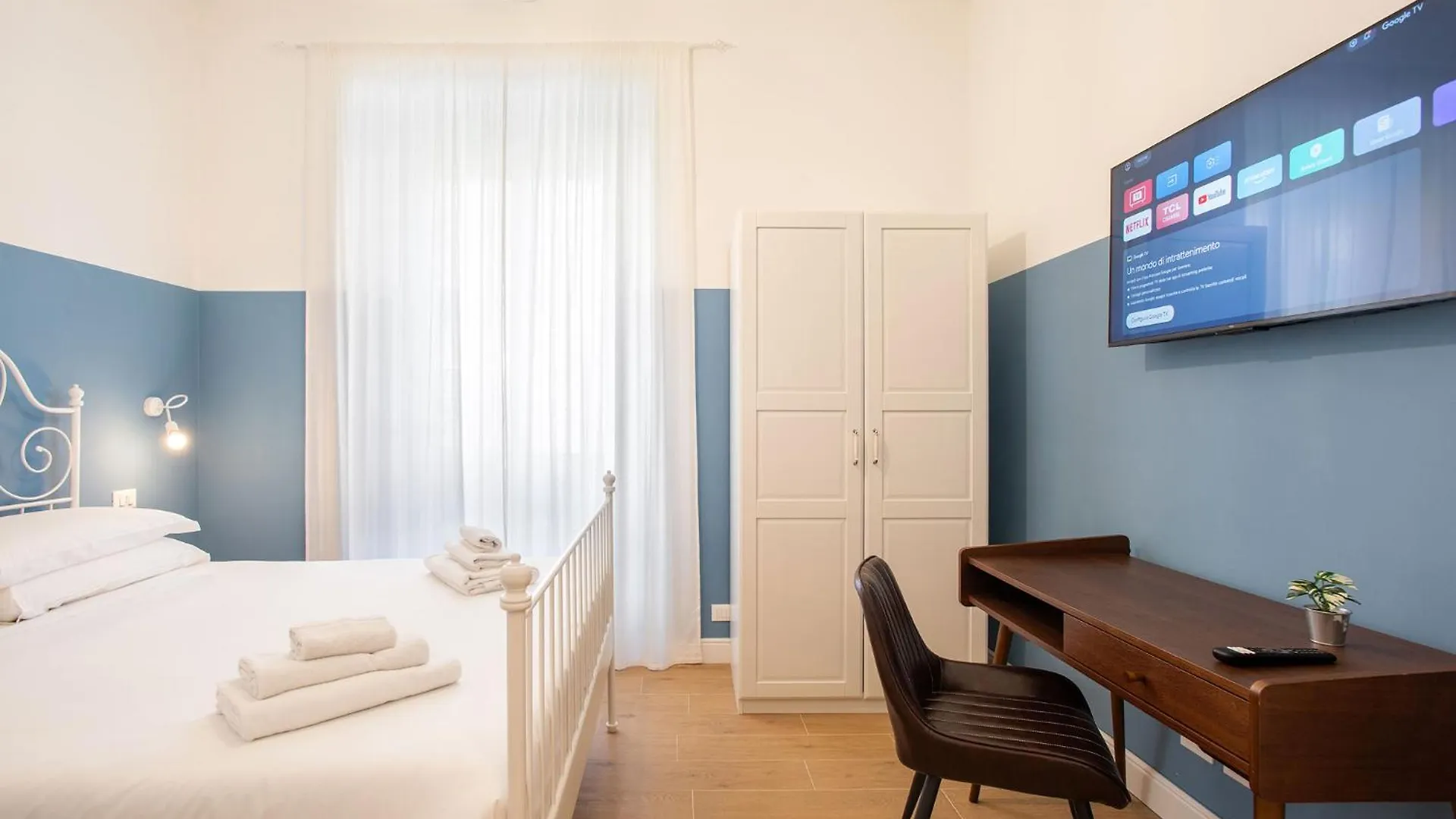 Obiekt noclegowy wyposażony jest w pełnowymiarową kuchnię z kuchenką mikrofalową, lodówką i przyborami kuchennymi. Obiekt zlokalizowany 6 min piechotą od najbliższej restauracji serwującej dania kuchni włoskiej. Obiekt noclegowy położony jest w odległości krótkiego spaceru od stacji kolei miejskiej Sant'Elena.